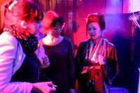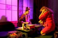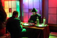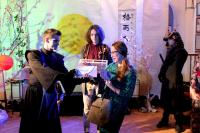 Таму на японскую вечарыну ў Беларускі тэатр “Лялька” спяшаліся гледачы розных узростаў і схільнасцяў. Ну а арганізатары пастараліся парадаваць кожнага. Хтосьці займаўся японскай гімнастыкай пад кіраўніцтвам Сяргея Талкача, хтосьці акуратна выпісваў іерогліфы-абярэгі разам з абаяльнай Ацумі-сан (Наталля Гайдук), хтосьці рабіў папяровых жораваў пад кіраўніцтвам педагогаў Віцебскага гарадскога цэнтра дадатковай адукацыі дзяцей і моладзі. Самыя смелыя наважыліся паспрабаваць сакэ з рук засяроджанага Ундзу-сама (Міхась Клімчук) і распытаць пра свой лёс у таямнічай Марыко-сан (Марыя Кавалёва).