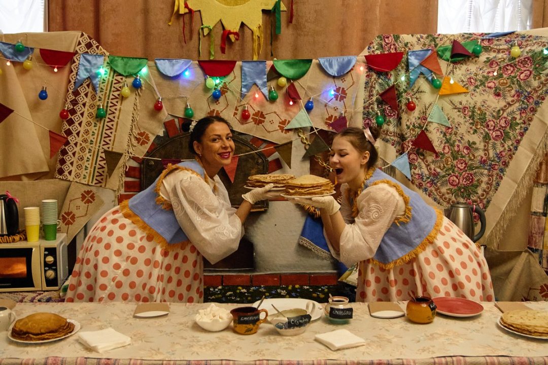 Свята пачалося яшчэ да першага званка. У фае тэатра панавала атмасфера сапраўднага кірмашу: гасцей частавалі духмянай гарбатай з самавара і, вядома, блінамі – галоўным сімвалам сонца.