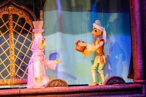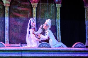 Ад гарадскіх сцен нібы патыхае водарам халвы і іншых салодкіх прысмакаў. Кожная лялька мае свой непаўторны характар, нават вослік з рыбаю, што пацешна перабірае нагамі, неахвотна ступаючы за гаспадаром. А па-над казачным Халіданам, нібы зоркі за празрыстымі аблачынкамі, успыхваюць і мігцяць дробныя зеленаватыя агеньчыкі, адлюстроўваючыся ў вачах зачараваных гледачоў.