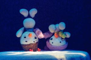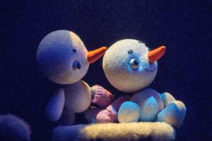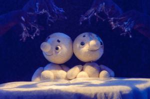 Гэтая гісторыя пра двух маленькіх снегавікоў. Іх зляпілі ў заснежаным парку маладыя людзі. Снегавікі ажываюць і выпраўляюцца ў госці да сонейка — папрасіць, каб яно не прыходзіла, дало маленькім снежным чалавечкам пажыць даўжэй. Але па дарозе да сонейка снегавікам увесь час сустракаюцца лясныя жыхары. Адзін замарозіў лапкі, другі — памірае з голаду, трэці ніяк не можа заснуць з-за халадэчы.